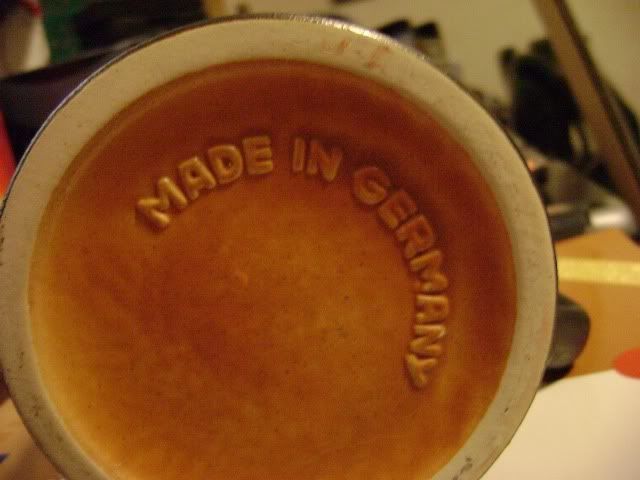 recently purchased off ebay and the seller wasn't sure about the maker. seems to be earthenware with a glaze.hinge is of the 5 ring variety. can't really tell what kind of paint/glaze is used for the darker parts. hoping its not lead based paint as i plan on using it here shortly. any help with identifying the maker and if its safe to drink from would be great. thanks. pictures: http://i37.photobucket.com/albums/e64/j4r0d/DSC00443.jpg http://i37.photobucket.com/albums/e64/j4r0d/DSC00444.jpg http://i37.photobucket.com/albums/e64/j4r0d/DSC00446.jpg http://i37.photobucket.com/albums/e64/j4r0d/DSC00447.jpg http://i37.photobucket.com/albums/e64/j4r0d/DSC00448.jpg